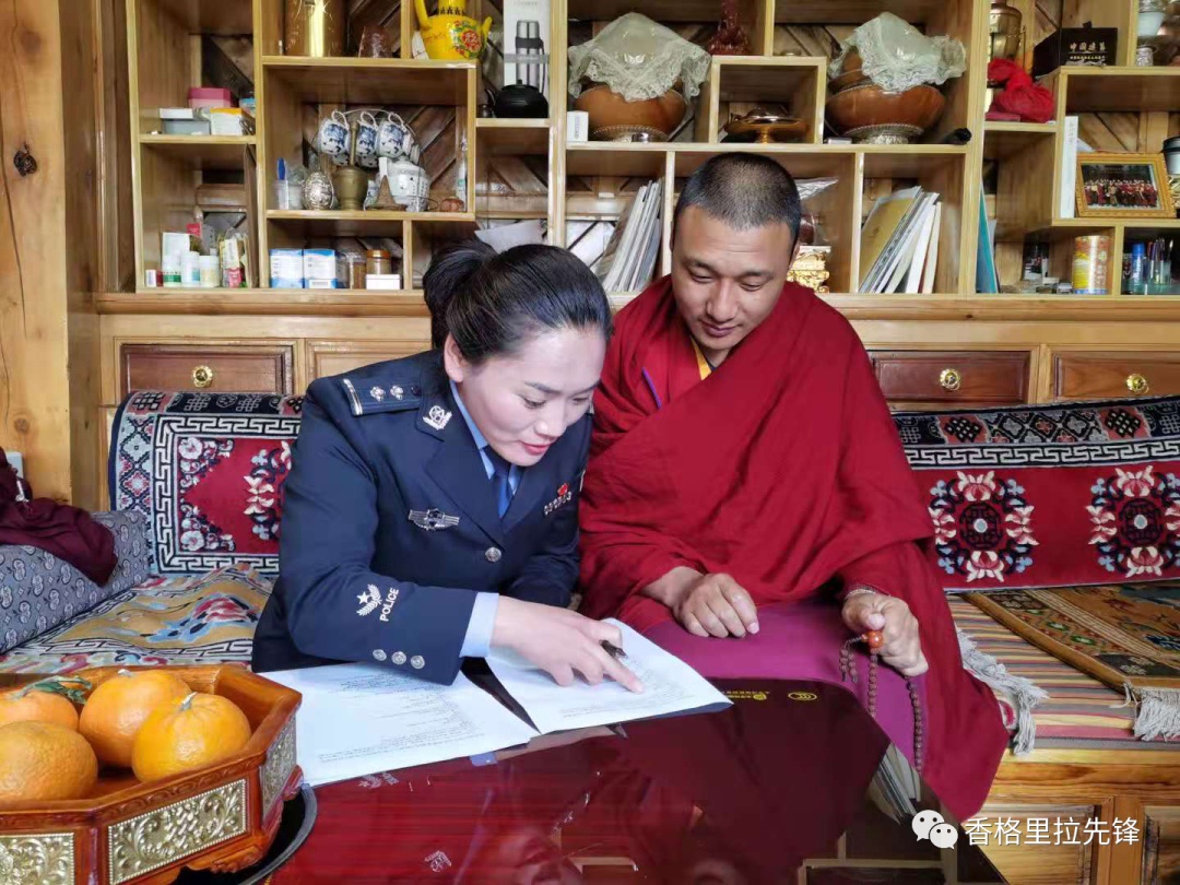 香格里拉市公安局尼旺宗派出所党支部党员进寺院宣传党的方针政策。