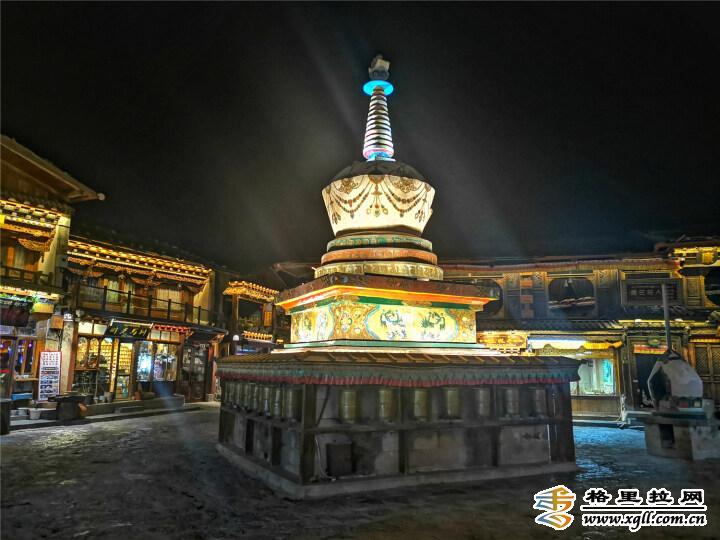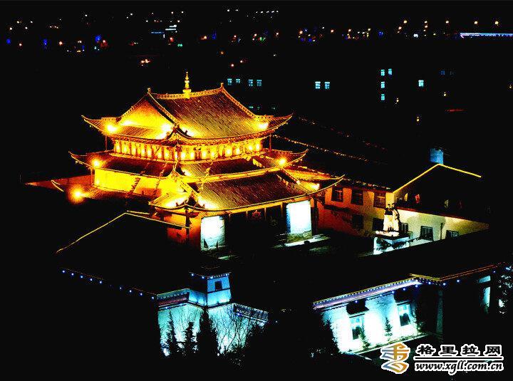 香格里拉独克宗古城公堂夜景 。(张国华 摄)