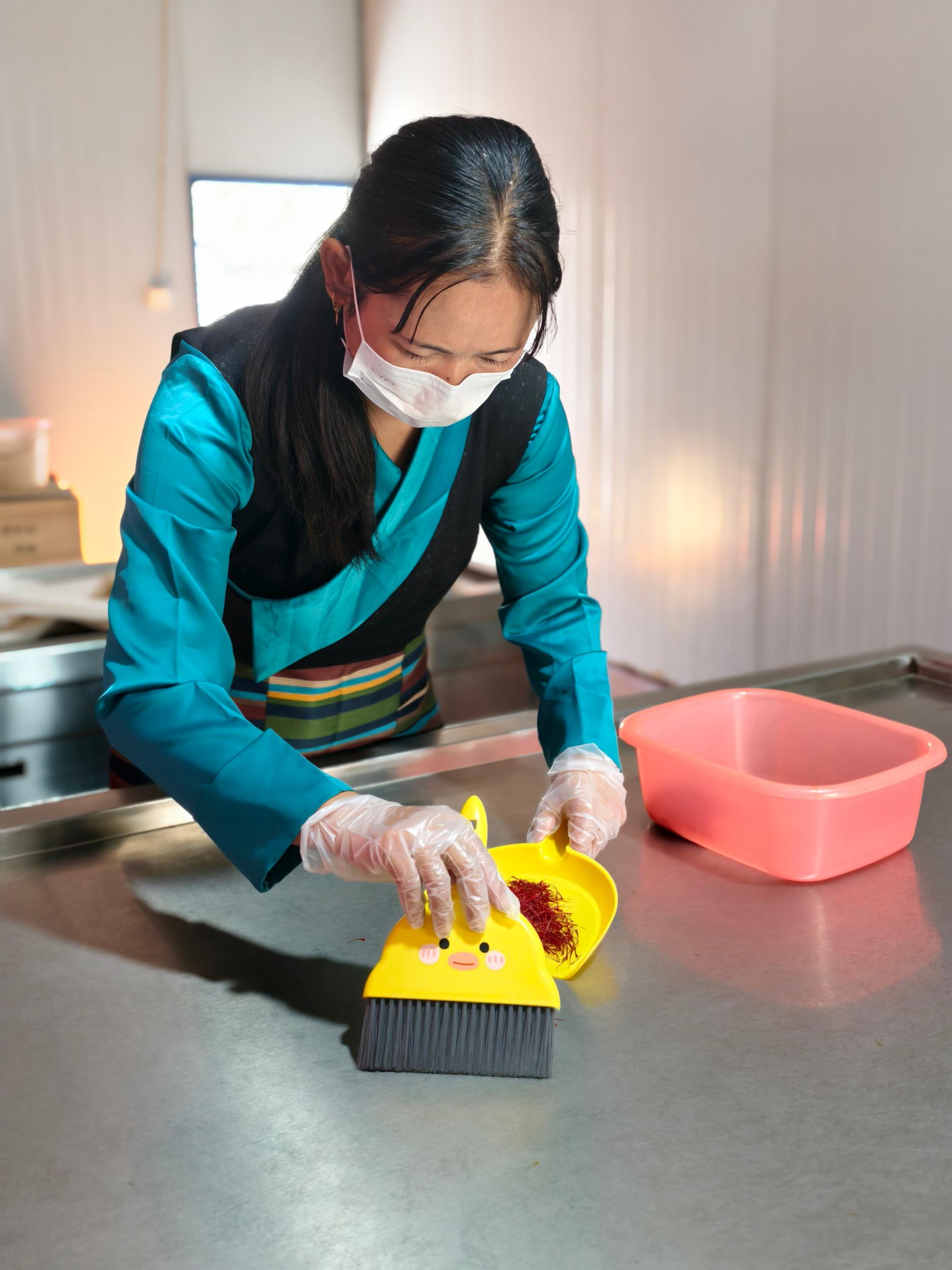 藏红花是一种珍贵的药材,具有活血化瘀、安神解闷等功效。该村的藏红花种植户陈韬絮正在采收藏红花。她笑着说:“种藏红花比种小麦收益高。去年我家通过藏红花收入一万多元。”随后,她将采摘出的藏红花花蕊进行烘干,烘干后的花蕊再通过消毒等工序即可进行包装。