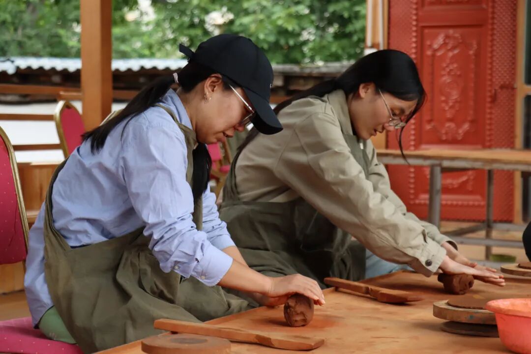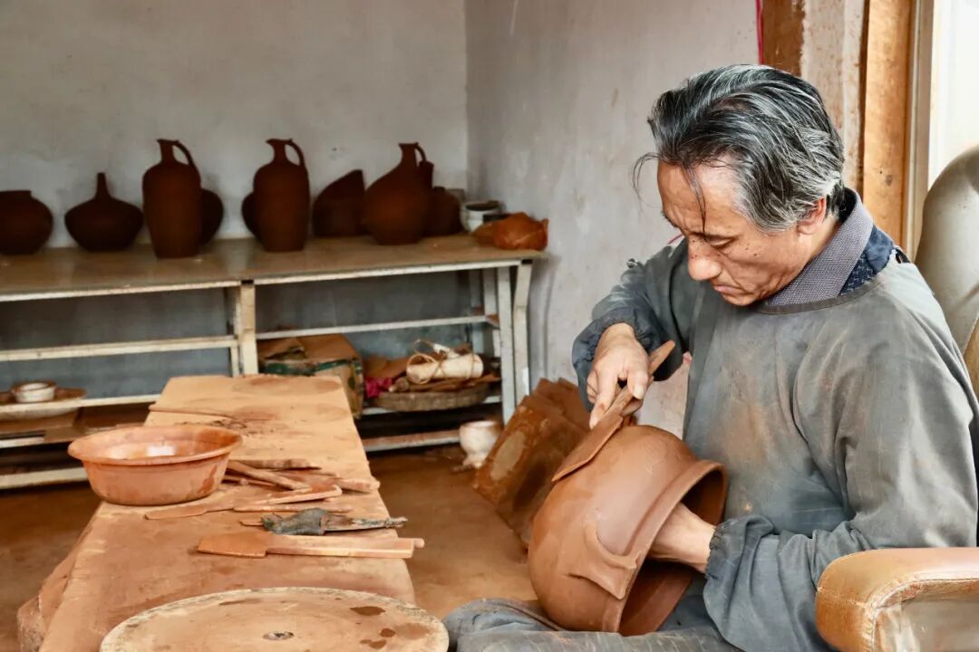 作坊外,几名游客正跟着农户体验制陶乐趣,指尖沾满泥土,脸上却洋溢着笑容。“刷抖音看到汤满黑陶,特意过来体验!”来自昆明的游客李璐说。通过抖音平台宣传,拉茸批初吸引了30多万粉丝,让汤满黑陶声名远播。2024年,全村黑陶销售额超500万元,带动农户年均增收约3万元;2023年以来,年均有3000多名游客专程前来体验,古老的黑陶技艺在“活态传承”中成为富民产业。