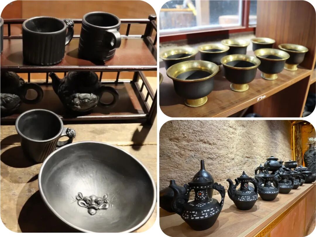 走进汤满村的一家黑陶作坊,致富带头人拉茸批初正指导农户揉泥、制坯,随着转盘飞速转动,一块普通的陶土逐渐成形。“以前黑陶只有3种原料,现在我们增加到6种,产品也有100多种了!”拉茸批初拿起一个带有藏族纹样的黑陶花瓶介绍:“从传统餐具到创意饰品,通过不断创新让古老技艺焕发新生。”