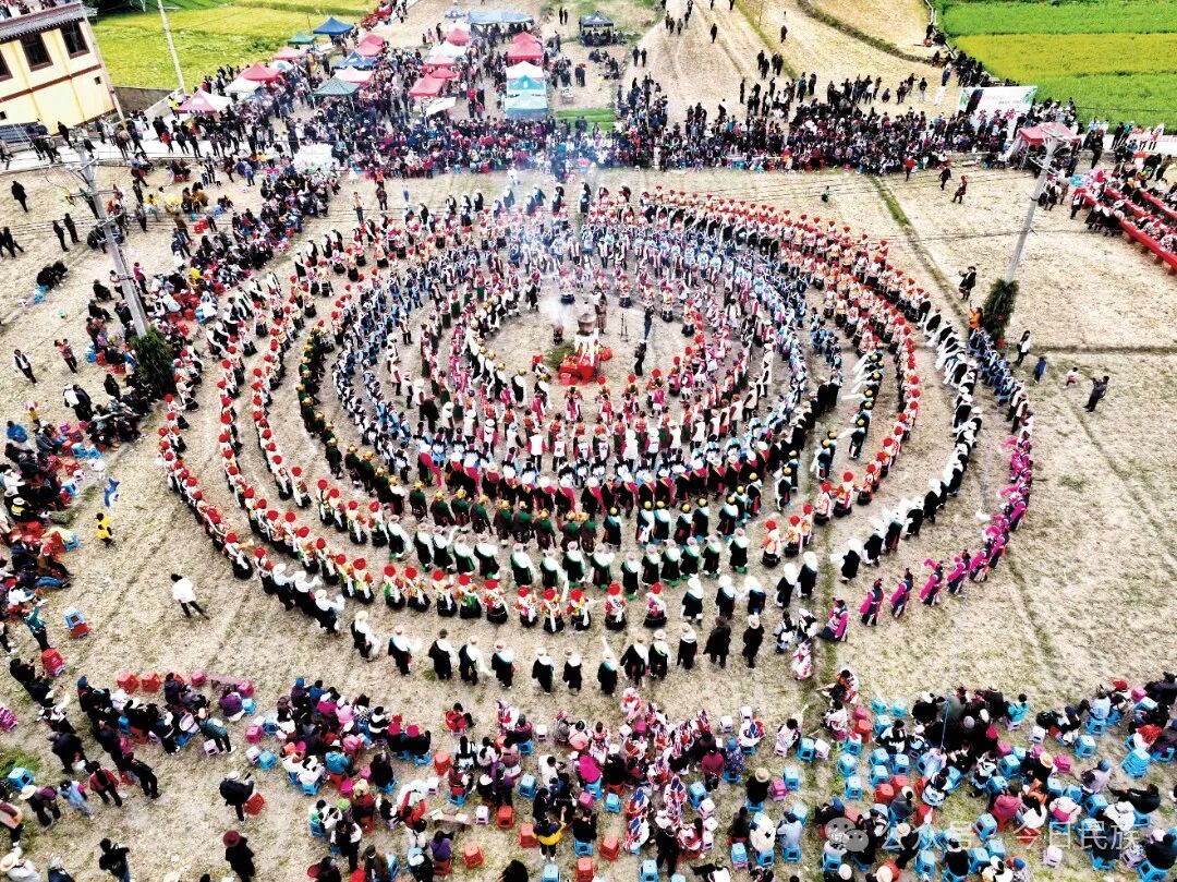 维西县塔城镇其宗村第二届“腊普文化”艺术节上各民族群众及游客同跳“千人锅庄” 黄晓丽 摄