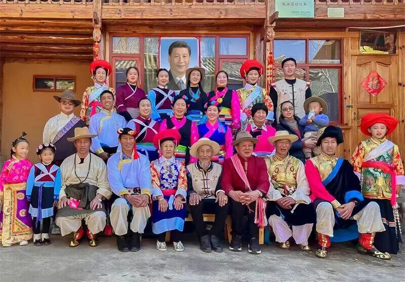 如今,和万春家族的故事已然是启别村人人称颂的一段佳话——他们跨越藏、汉、白、傈僳、纳西5个民族,五个家庭、27口人织就四世同堂的暖景,仿佛一座微缩的民族团结博物馆。