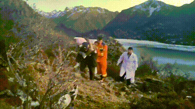 救援人员决定轮流背负两名失温游客下山