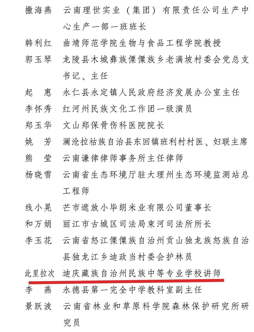 其中,迪庆1名个人1个集体1个岗组上榜: