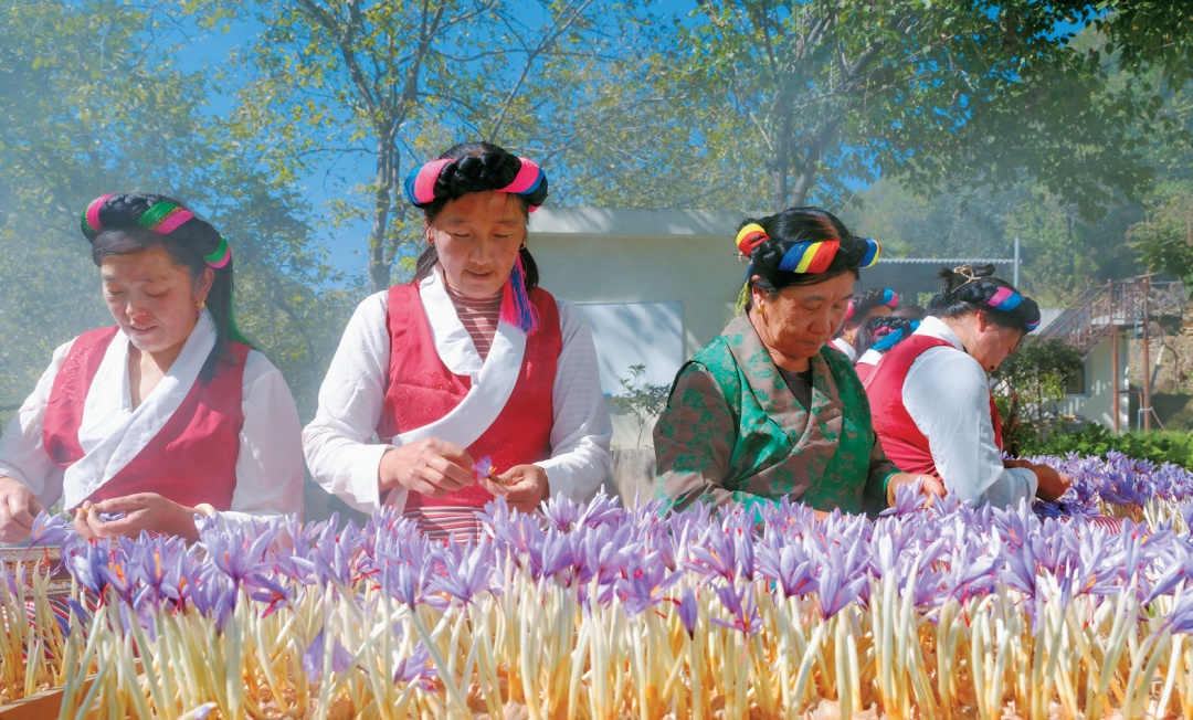 近年来,迪庆州把中药材作为农业提质增效、群众增收致富的重要产业进行培育,维西县被认定为全省首批“云药之乡”,“维西当归”获评全省“十大名品”,“央坷藏红花”获评全省“十大名药材”。图为维西县塔城镇其宗村村民采摘藏红花。迪庆州融媒体中心供图