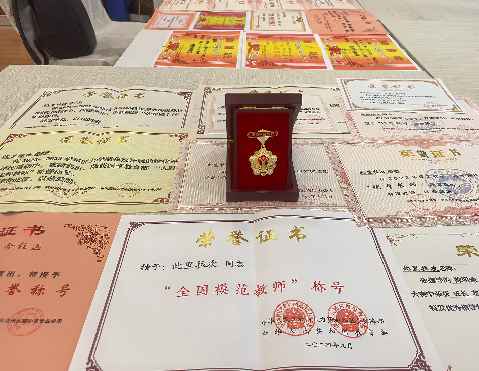凭借对教育事业的无限热爱与执着付出,此里拉次先后荣获多项荣誉。2024年9月,她被评为“全国模范教师”。她还荣获云南省中等职业学校班主任职业素质竞赛三等奖,多次被迪庆州教育体育局记功、嘉奖,并连续多年获评校级“优秀教师”“优秀班主任”。她指导的学生在云南省职业院校技能大赛、迪庆州职业技能大赛中屡创佳绩。此次荣获全国三八红旗手称号,是对她扎根高原、爱岗敬业、无私奉献精神的最高肯定与认可。