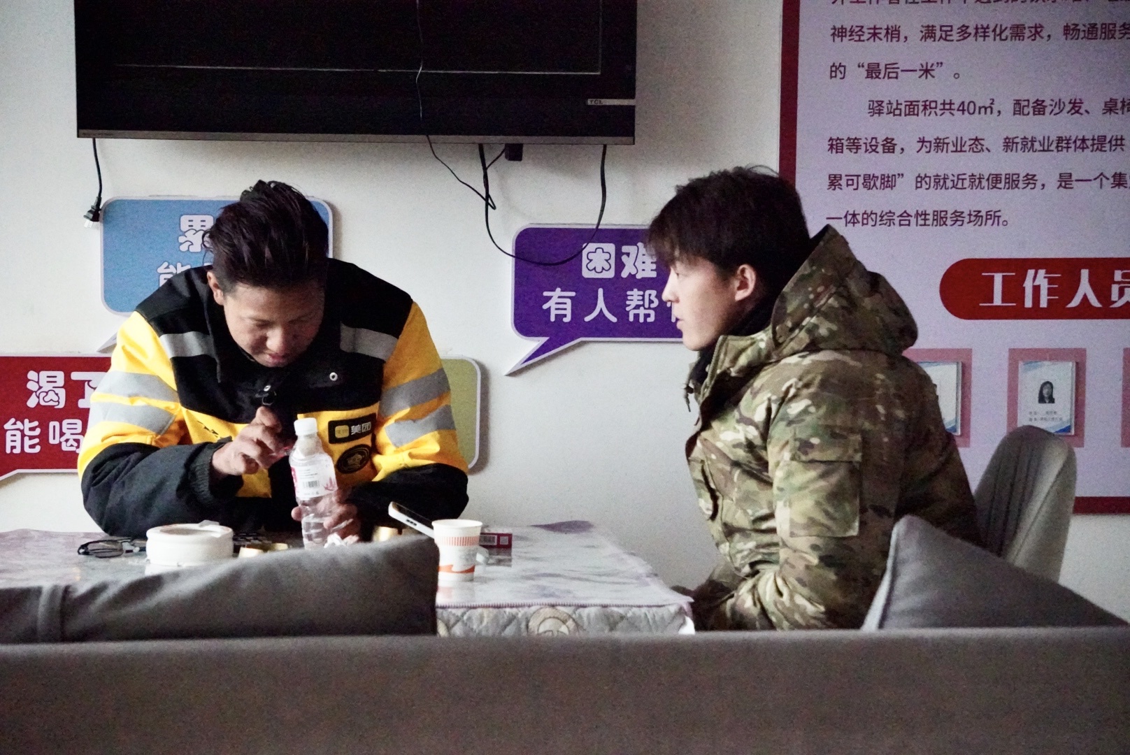 “我喜欢来这里,不光是因为有热水、能取暖。”李云飞说,“这儿的人认识你,会跟你打招呼,问你今天跑了几单。那种感觉就像真的在这个城市有个落脚的地方。”