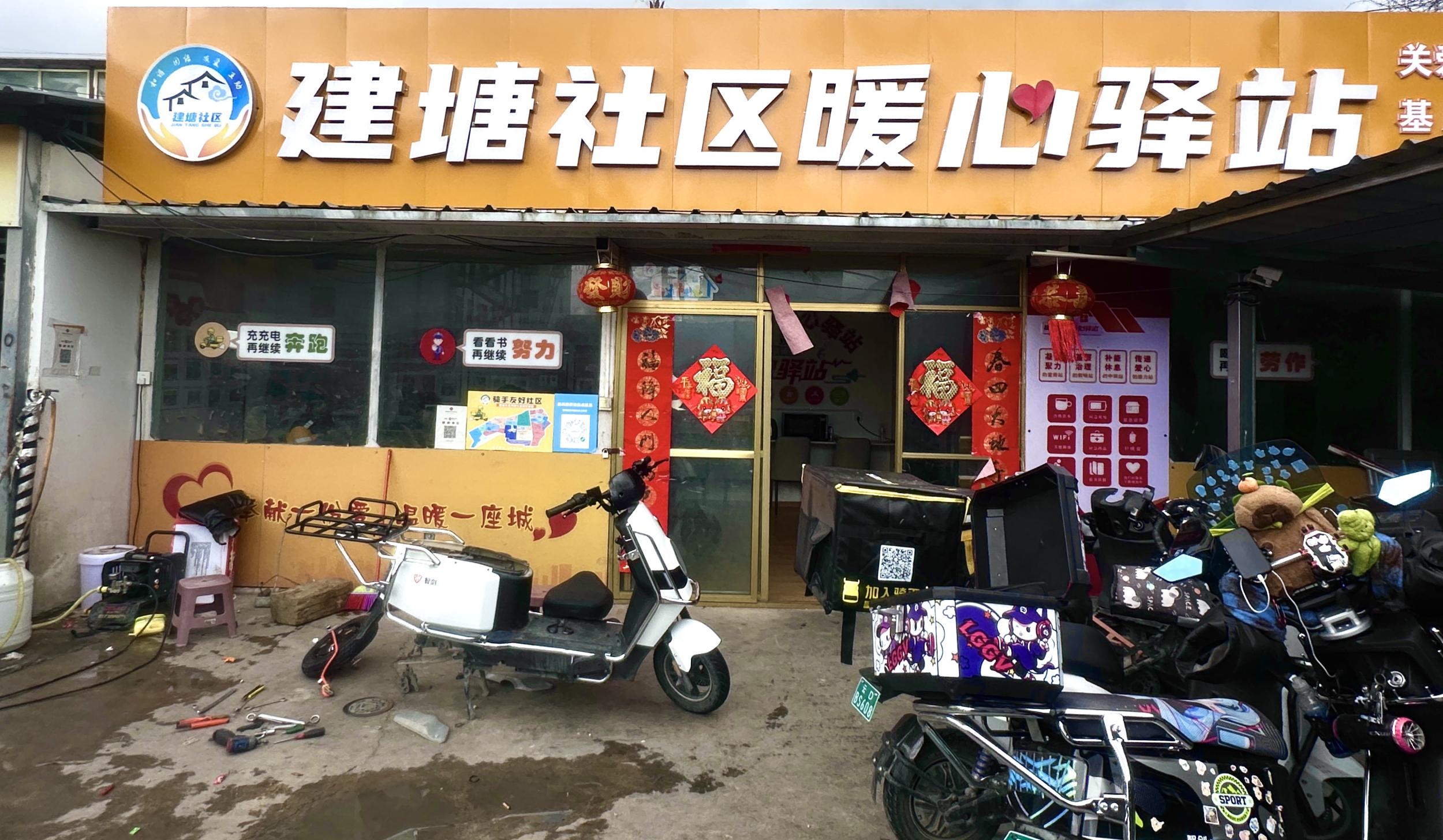 2024年底试运营,今年4月正式挂牌。建塘社区暖心驿站的诞生并不轰轰烈烈——沙发、桌椅、饮水机、微波炉、取暖器,不过是一些寻常物件,但正是这些寻常,让骑手群体找到了不寻常的归属感。“从试运营到至今,驿站固定服务骑手440余人,占全市骑手总量40%。”鲁茸祝安如是介绍。
